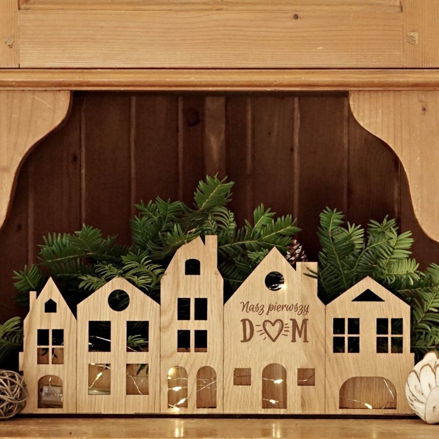 Jesienią i zimą, kiedy dni są krótkie chętnie sięgamy po świeczniki i lampki, aby wnętrza naszych domów i mieszkań nabrały przytulnego charakteru. Inspirowane skandynawskim stylem Scandi drewniane domki z oświetleniem LED to świetna alternatywa dla świeczek szczególnie w domach, gdzie bawią się dzieci. Skorzystaj z naszego pomysłu i odkryj piękno dekoracji drewnianej do domu, która ubrana w formę stylowych domków skandynawskich i podświetlona sznurem ciepłych światełek LED cudownie ociepli Twój dom a przy tym dyskretnie roświetli wnętrze. Nasze Drewniane domki w stylu Scandi z oświetleniem LED spersonalizowane własnym tekstem to niezwykły i bardzo gustowny prezent na Boże Narodzenie, podarunek z okazji Parapetówki, czy dekoracja do swojego domu gdy chcesz go upiększyć.